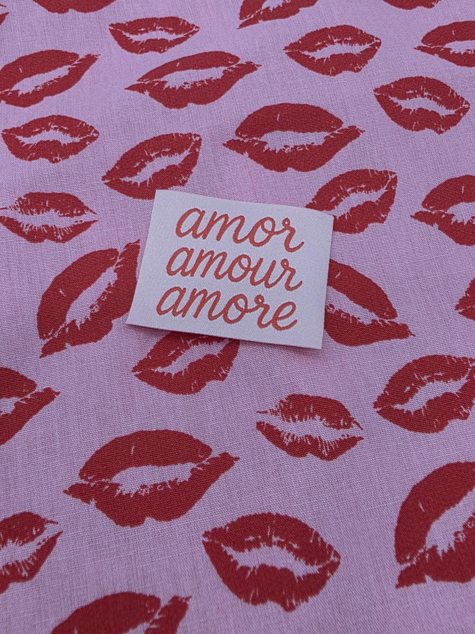 Ajoute une touche d’amour et de sens à tes créations couture avec les étiquettes tissées “Amor, Amour, Amore”.